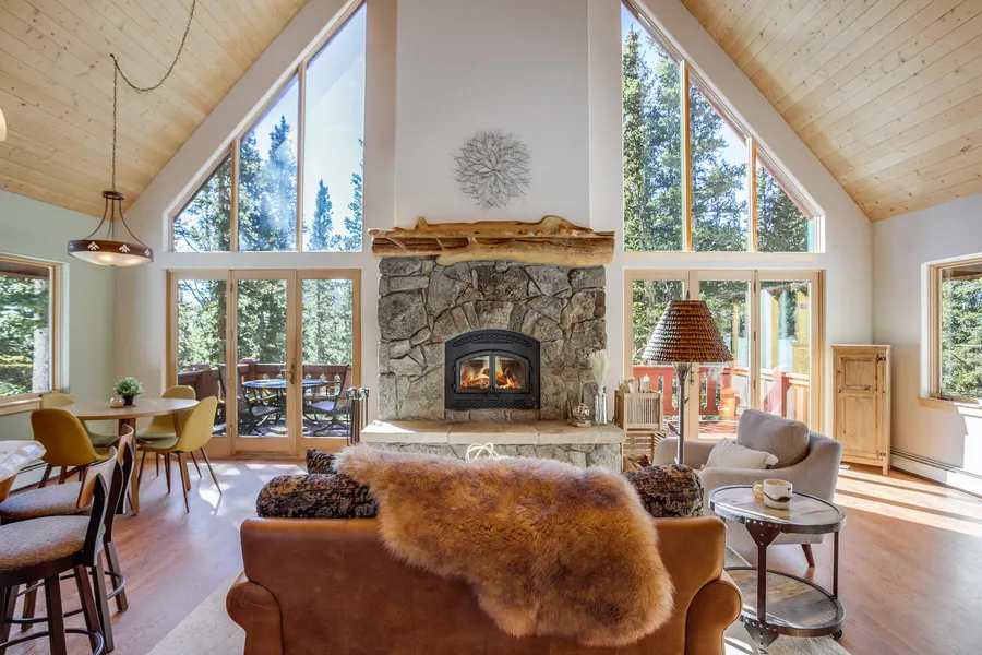 Experience mountain living to the fullest! This chalet style home is on Quartzville Creek, includes private trails, 2 bridges, and a bonus, divisible lot! With South-facing windows and 24ft vaulted ceilings, its open concept layout is engulfed with natural light. A stone fireplace and custom finishes make it ideal for entertaining. The lower level includes another living area, bonus room and walk out patio with gorgeous stonework. Summit four 14ers from your door while just 25 minutes to Breck!