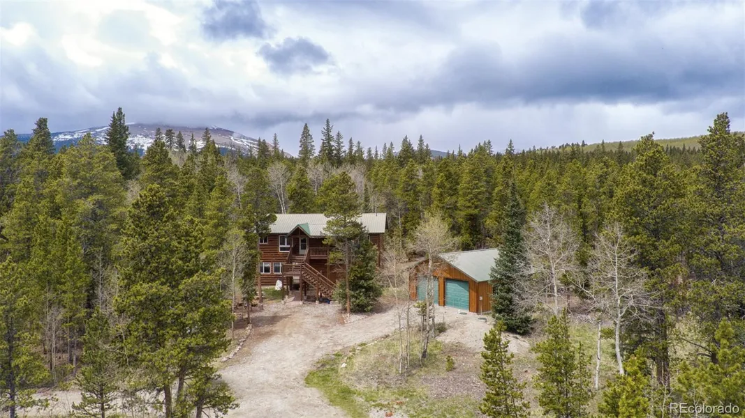 Welcome to your private mountain retreat! This contemporary log home boasts 4 bedrooms, 3 bathrooms, and a detached 2 car garage on a sprawling 2-acre wooded lot. From the moment you step inside, you'll love the warm and inviting atmosphere, perfect for relaxing when you need to get away. The main living area features vaulted ceilings, hardwood floors, and a pellet stove in the cozy living room. Also on the upper level you'll find the kitchen and dining space, along with 2 bedrooms and 2 bathrooms. The lower level offers 2 bedrooms and 1 bathroom, as well as a family room to entertain your guests. The kitchen is a dream come true with tile countertops, wood cabinetry, and stainless steel appliances. The primary bathroom is just as impressive with dual sinks, tile countertops, a walk-in shower and jetted tub for ultimate relaxation. Step outside onto the covered deck and take in the breathtaking views of the trees and gaze at the mountains on the horizon. Whether you're enjoying your morning coffee or watching the sunset, this outdoor space is perfect for soaking up all that nature has to offer. This property comes equipped with all of the must-have amenities that make mountain living comfortable and easy. Enjoy radiant heat throughout the home along with a radon mitigation system for added peace of mind. Plus, there's a newer leech field and strong producing well. As an added bonus, this property comes furnished so you can move right in. With HOA membership you have access to a stocked community pond. You'll have plenty of opportunities to enjoy all that this area has to offer during all 4 seasons and as an extra added bonus you're only a short drive to the world class skiing, hiking, ATV-ing, white water rafting and the many mountain towns Colorado is known for! This property has it all, from stunning views to ample space for entertaining guests and enjoying the great outdoors. Don't miss your chance to make this incredible property your own!