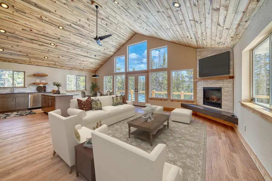 Gorgeous 4-bedroom/4 bath home designed for the ultimate in mountain living. Vaulted tongue-and-groove ceilings reach