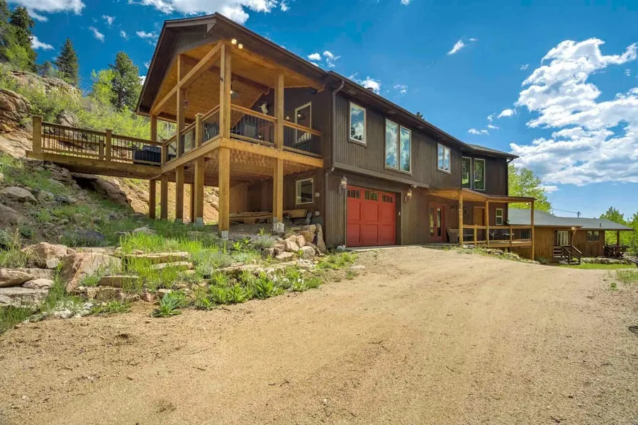 Nestled high in the Rockies less than 2 hours to Denver, this hidden paradise located at the end of the road provides absolute serenity. Enjoy your morning coffee on the sun deck, listening to the cascading stream right next to the home. With Little Deer Creek flowing through the land the property lends itself to abundance of big game sightings. This house was designed for 2 families with a new addition connected to the original cabin which can provide 100 percent self sufficient in-law quarters. The current owners have been using the original cabin as a VRBO, that is booked from May to September. The 8.7 acres borders 1,000,000 acres of Pike National Forest. If you have been looking for the perfect family get away or year round home, this propert checks all the boxes.