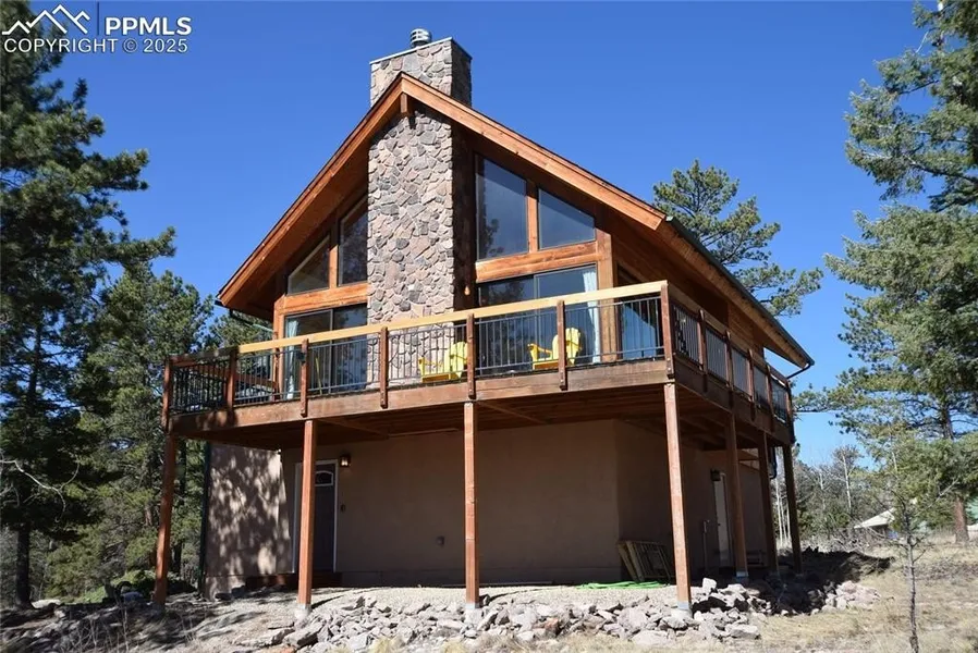 A STUNNING HOME WITH KILLER PIKES PEAK VIEWS AND SOME ELBOW ROOM FOR YOUR PRIVACY AWAITS ON TWO PRIVATE ACRES... THREE ENORMOUS SLIDER PATIO WINDOWS PROVIDE AMPLE SUNLIGHT AND A MAIN LEVEL WALK OUT TO NEARLY A 500FT WRAP AROUND DECK. ROCK WALL WOOD FIREPLACE SEEMS TO JUST BE ENGINEERED TO DRAW THE EYE OUT TO THE MOUNTAINS VIEWS OF COLORADO. HARDWOOD FLOORS ON THE MAIN LEVEL. PRIVATE MASTER BEDROOM DECK IF YOUR LOOKING FOR AN EXTRA BIT OF PRIVACY. OPEN UPPER-LEVEL BEDROOM LOFT HAS TONS FOR SPACE FOR EXTRA BEDS AN OFFICE/BATHROOM AND IS ACCEDED VIA A SPIRAL STAIRCASE. JUST MINUTES OUTSIDE FLORISSANT AND ABOUT 10 MILES TO ELEVEN MILE RESERVOIR RECRECTION AREA MAKES THIS THE PERFECT LOCATION TO JUST GET AWAY, SHORT TERM RENTAL OR FULL TIME LIVING WITH SOME ELBOW ROOM. OVERSIZED GARAGE IS NEARLY 22X22 FOR ALL THE TOYS. 5 GMP WELL IS PERMITTED WITH THE STATE.