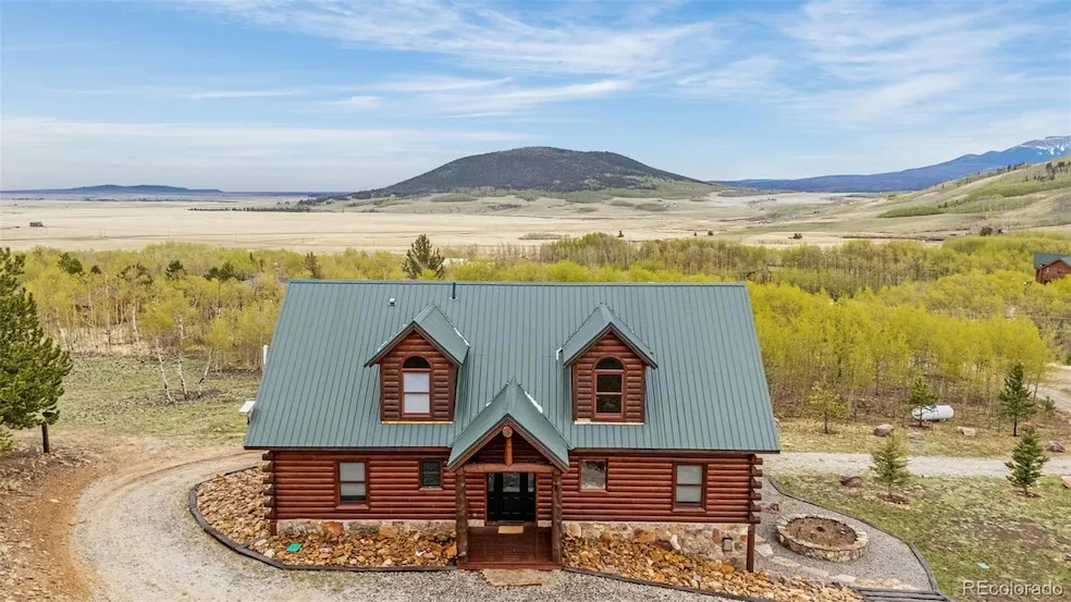 4% VA ASSUMABLE LOAN. Welcome to this exquisite four-bedroom, five-bathroom mountain estate, a true masterpiece of rustic elegance-once showcased on HGTV s Log Cabin Living. Nestled on two private acres within the prestigious, gated Warm Springs Ranch community in Fairplay, this stunning log home offers the perfect blend of serene seclusion and elevated mountain living. 40 MINUTES FROM BRECK! Crafted from authentic log construction and adorned with striking beetle-kill pine ceilings and walls, the home welcomes you with warmth, character, and refined craftsmanship. The soaring two-story great room commands attention with its dramatic floor-to-ceiling stacked stone fireplace, expansive windows, and skylights that bathe the interiors in natural light. The gourmet kitchen features a generous center island with bar seating and prep sink, sleek stainless steel appliances, gorgeous custom crown molding cabinets, and walk-in pantry. Step from the dining area onto the expansive covered deck with breathtaking alpine vistas and surrounding views. The main level offers two bedrooms (one non-conforming) and two full baths (one with steam shower/aroma smells). Upstairs, a versatile loft space. Ideal for a reading nook, study, or yoga retreat. The luxurious primary suite is a true sanctuary, complete with vaulted wood ceilings, a cozy gas fireplace, panoramic windows, spacious closet, and an indulgent five-piece spa bath featuring a soaking Microsilk tub, custom-tiled shower, and dual vanities. Downstairs, the walkout basement includes family room with a third fireplace, custom built-ins, and space for a billiards table. Two additional en-suite bedrooms ensure comfort and privacy for every guest. The lower-level deck with hot tub creates a perfect apr s-ski retreat under the stars. Additional highlights include dual-zone heating with two NEW tankless water heaters, NEW humidifiers, dual steam showers, fresh cheeking, fresh staining, and an irrigation system.