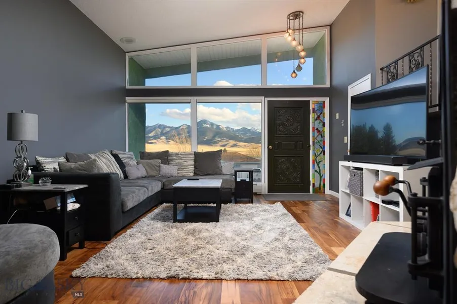 Dont miss the mountain views from this spacious mid-century modern home nestled on large corner lot. Main level features living room with vaulted ceilings and stone fireplace, kitchen with high-end appliances, and oversized dining room. The lower level features bonus room with gas fireplace and wet bar, large bedroom, three-quarter bath, and laundry room. Upper level has three bedrooms and full bath.Large yard with mature trees, landscaping, underground sprinklers, concrete patio with privacy wall, shed, and additional outbuilding with hot tub and storage space.Oversized two car garage has plenty of storage space and additional paved side parking.