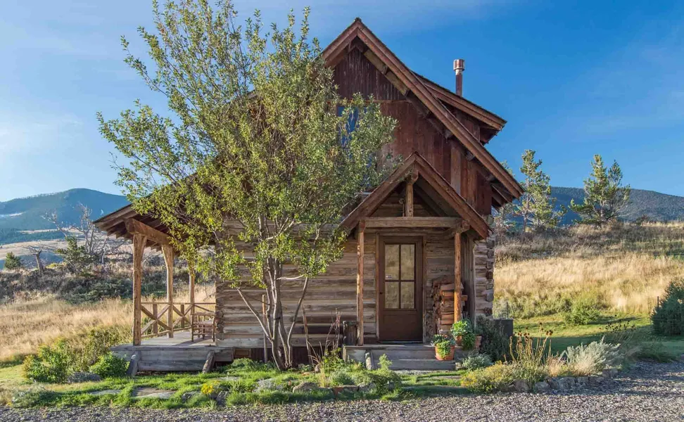 Nestled on a private +/- 59-acres with views of the Gallatin mountains, only 8 minutes from downtown Livingston and 25 minutes from Bozeman, you will find this romantic turn of the century hand hewn log homestead cabin sourced and relocated from Sheridan, MT and revitalized by renowned architect Candace Miller. Exemplary craftsmanship was executed using the reclaimed materials to create rustic charm while integrating all the modern conveniences. To retain the original homestead look, the hewn logs were cut in half lengthwise and applied to 26 insulated stud wall construction both exterior and interior at the main level. Original dove tail notching was retained at each exterior corner. Reclaimed corrugated metal is used at the foundation walls and barn board at the exterior walls of the upper level. Reclaimed 1 x 10 pine flooring is used on the main and upper levels with stained concr...