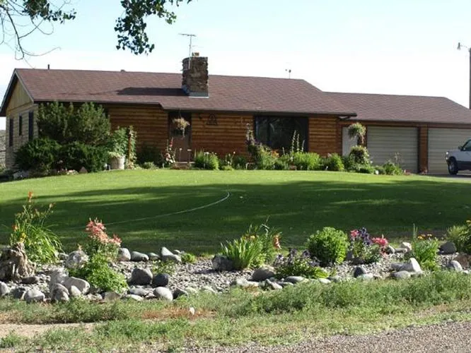 43 North Ridge Drive - CHECK IT OUT! Just minutes from Cody, this property has wonderful views of the mountains that surround the 3.28± irrigated acres. The home has log siding and the interior has many wonderful features. There is a slate entryway and a high-ceiling living room with pecan laminate wood flooring and wood-burning fireplace. The dining area is open to the kitchen that has been remodeled and has upgraded cabinetry, countertops and tile flooring. Large redwood deck. Full basement. Main level laundry. Spacious 2-car attached garage.