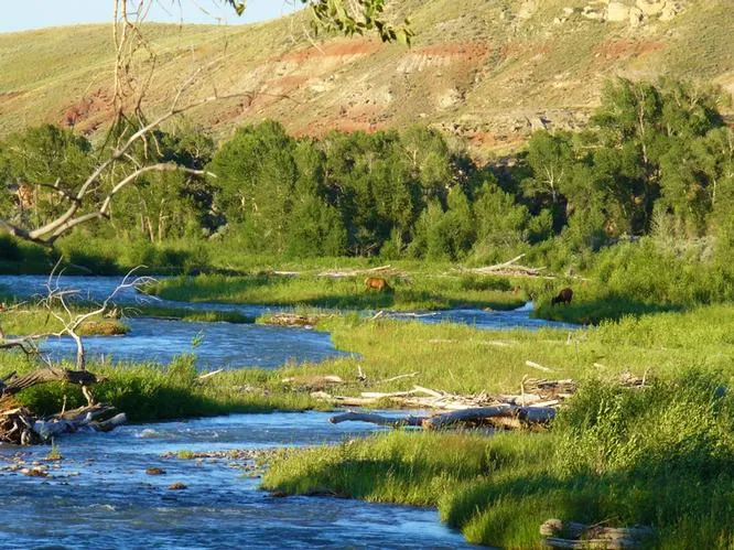 A true sportsmans offering, the Aust Ranch is located eight miles from the small ranching community of Meeteetse, Wyoming, in Park County and is 28.7 miles from the town of Cody. With 1,413 acres and 960 BLM-leased acres, the Aust Ranch is a combination of low, lush irrigated and riparian lands situated along ¾ mile of the Greybull River. Filled with Yellowstone cutthroat trout, the river provides excellent habitat for Whitetail deer during both the summer and winter months including a healthy population of large bucks. A sizable herd of elk also enjoy the river bottom as they move along the corridor between the ranches almost never leaving private property; this has generated a large number of big bulls with many ranging over 360 Boone and Crockett. The Aust Ranch has approximately 340 acres of irrigated and riparian lands with 160 acres having excellent water rights and a history o...