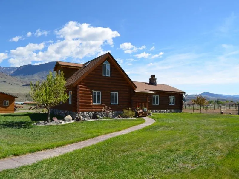 Located on the North Fork just 25 miles from Yellowstone's East Gate and 1 1/2 miles from the Shoshone National Forest. This lovely log home takes in wonderful mountain views. The main level boasts 3 bedrooms, a full bath, modern kitchen, dining area and living room with a floor to ceiling river rock fireplace. Upstairs is the master suite with a huge walk-in closet and full bath. Downstairs is the family room and storage area. A 42' x 42' barn contains a heated shop area, hay storage and vehicle storage. The entire property is irrigated via sprinklers. Other conveniences include dog kennels, horse waterers and riding arena. This 5 acre property is well maintained and well priced at only $449,000!