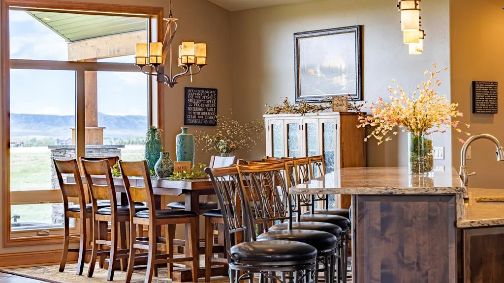Executive style living close to town! Mountain views, space, high end finishes and much more!! The property features 4 bedrooms, 3 baths, dining room, great room, bar, office, heated tile floors, quartz counters, huge 1800 square foot over-sized heated garage, walk in fire proof vault, covered outdoor patio and more Must see! Call today! .