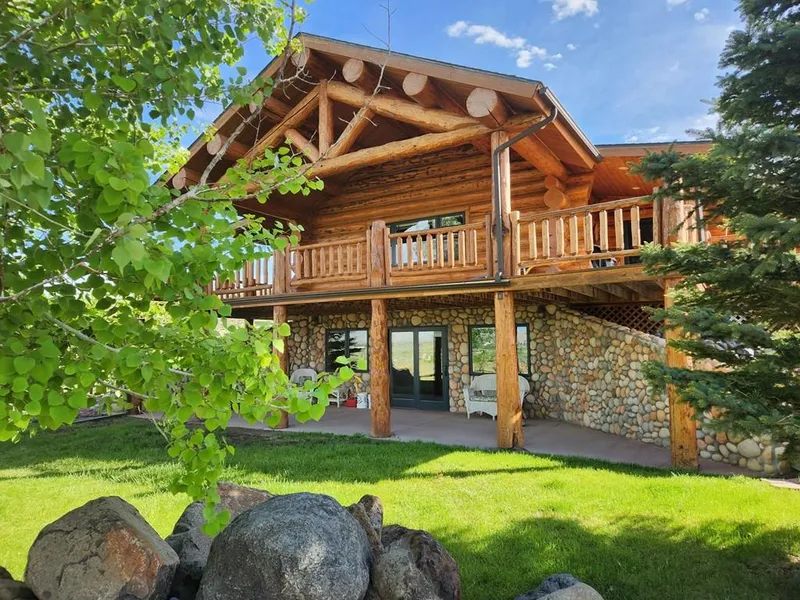 Custom skip peeled log home on 11. 66 acres at the end of the road and crest of the skyline. Views for miles and adjacent to thousands of acres of public land. Four bedroom, three bath, central and forced air, wrap around covered deck, beautiful landscaped yard with post and rail fencing, garden and boardwalks. Barn/shop is divided into three spaces: RV garage, Shop, Shop/Office that is currently an efficiency apartment! Custom elk & deer antler chandeliers, custom stone and wood work throughout this gorgeous original log home. Cell tower at the corner of the property is on contract- owners receive monthly lease payment.