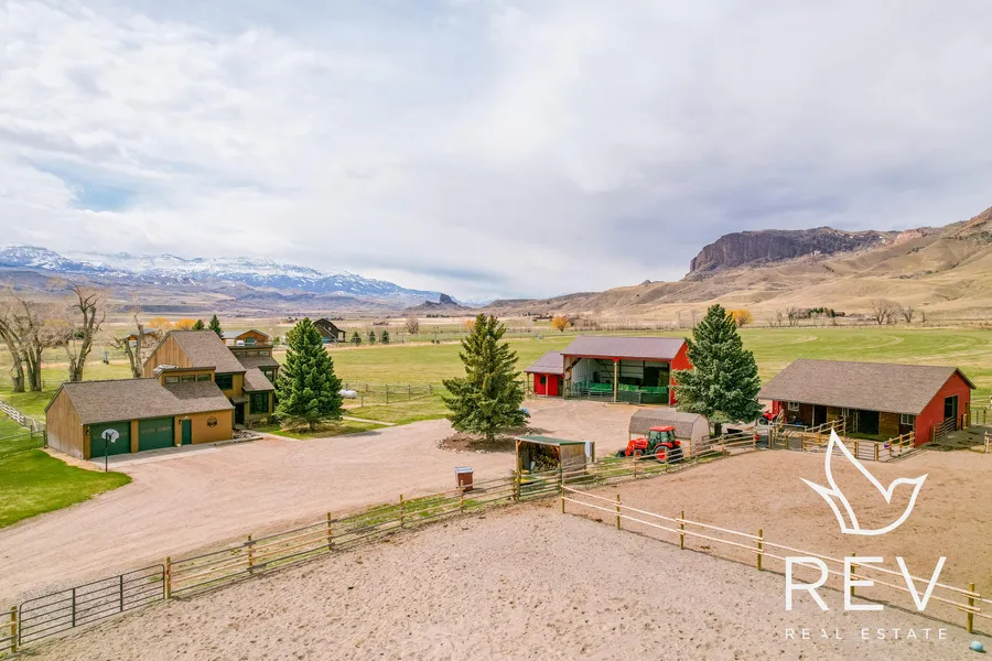 True horse property with horse barn, hay barn and shop, and outdoor riding arena. Twenty acres, about 13 acres of pasture (grass sprinkledby a Reinke pivot run with an app), horse friendly fencing, round pen. Horse barn has four stalls, bay storage, tack room, rubber floor mats,two pull through garage doors. Brand new hay barn with attached shop. Shop has concrete floors, is insulated and has power. Beautifularena has fabric underlayment, 50/50 mix of crusher and sand that is 4" to 6" deep to keep horses healthy. Property also includes a woodshed, a fuel cabinet, an automatic entry gate and two loafing sheds. Yard around the home is on automatic sprinklers. Mid century modern stylehome constructed with large windows situated to bring the outdoors in, natural light, views of the South Fork Valley and reservoir, vaultedceilings, clean lines built to create geometric interest. Three bed, two and one half bathroom home is fantastic for hosting guests with two ofthe bedrooms on the second level. Gorgeous morning patio, wood fireplace, main level bedroom has en-suite and direct access to the backyard. Located near the base of Sheep Mountain with access to public lands, this property is ideal for the outdoor, horse loving enthusiast.
