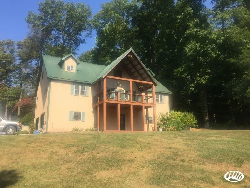 The location of this home is everything an outdoorsperson or privacy-seeker could want. Watch deer and wild turkeys from the windows of this cozy home nestled into the hillside of this gorgeous property connected to hundreds of acres of contiguous surrounding woodlands. Enjoy the spectacular views out to farm fields of the Raccoon Creek bottoms. The property features a bonus cabin that is a pole-building finished into a living quarters that the original owners lived in while building their dream home. The “cabin” has one bedroom, one full bath, a refrigerator, stove, washer and dryer with a propane-fueled furnace and provides all the amenities for comfortable living. It makes a great place for out of town guests to stay, a great man cave for gathering during hunting season, or a rental-income opportunity! The actual home was built approximately 10 years ago and has a beautiful, rustic open-concept feel with vaulted ceilings, 2-bedrooms downstairs, 2 sleeping areas upstairs in the loft area and 2 full baths. The 4123 square feet offer tons of room for a larger family, and the kitchen area, with oak cabinetry and true hardwood floors, is located conveniently just off the main living area with open views and modern appliances that all stay with the home. Adding to the rustic charm are the poplar-sided walls, wood actually harvested and milled directly from the property! The exterior of the home, and cabin, is practical and maintenance-free metal siding and roofing. There is a beautiful walk-out deck off the second floor with massive support posts and railing, adding to the rugged look and offering beautiful vistas to the creek-bottom fields beyond. Rounding out the features of this great home is a partially-finished basement providing yet more living and entertaining area to expand in to. This home is a unique find and opportunity to live the outdoor lifestyle, yet be comfortably located to convenient shopping and commuting. Priced to sell quickly so please call to arrange your personal showing today. Shown by appointment only.