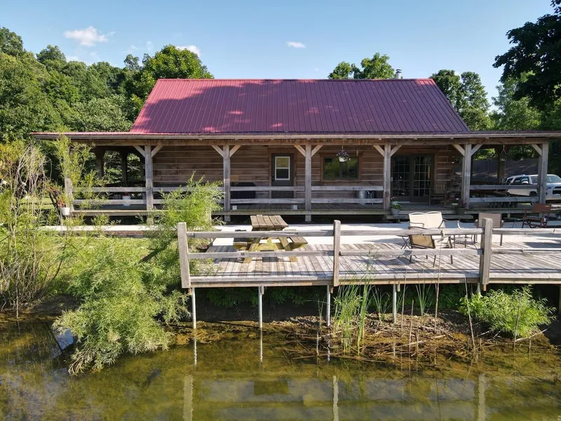 Hunter's Paradise! Sitting on 40 beautiful acres is the Parke County Country Cabin. This 2400 square foot home was built in 2018 and is just minutes from Rockville, IN. The home's interior and exterior are made of 8X8 rough sawn poplar. The living room has a plenty of natural light from the transom windows and vaulted ceiling. A small wood stove with stone hearth adds to the cabin feel and provides that extra bit of heat on those cold winter days. Hardwood floors are throughout the main rooms of the home. The spacious master bedroom is on the main level and offers a large walk-in closet leading to the master bath, which has a custom tile shower and claw foot tub. The eat in kitchen is on the back side of the home and overlooks the pond. The kitchen has custom made painted cabinets and a custom door leads to the large laundry room and half bath. A beautiful custom staircase leads to the lower level. At the bottom of the stairs, you will find a sitting area between the two lower-level bedrooms. The second full bath is located on the lower level. The rest of the lower level is unfinished and is currently used for storage; there is enough room for a 4th bedroom. The exterior of the home features a complete wrap around porch, providing views in every direction. The rear porch section leads to the patio and the patio leads to the dock which sits above the 2 acre pond. The pond is home to bass, bluegill, and roughly 20 to 30 catfish that the seller feeds every morning and evening. The property north of the home is rolling with areas of open food plots and areas of thick cover. Many nights the local deer can be seen working through the thick cover on their way to go feed. The wooded portions of the property have a good mix of hardwoods and plenty of deer sign. A small creek crisscrosses the property and provides year-round water for all the local wildlife. The current owners have harvested a good number of quality deer and turkeys from the property. To schedule a property visit, contact Land Specialist, Jeff Michalic, at 812.230.4503.