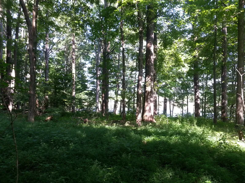 Wooded lot with nice view of the lake. This lot is on protected shoreline, but there is a spot for your boat on a shared floating dock just a few lots down.