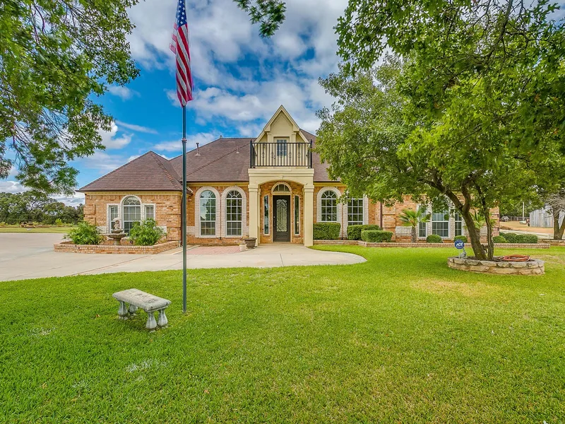 Welcome Home to this gorgeous estate on 10 acres in Weatherford ISD! Beautiful stone gated entry w concrete drive. The 4100sqft home has a grand entry leading to the oversized living room. With 4 bedrooms down and 1 up there is plenty of room for the whole family! A beautiful formal dining, study, and game room with wet bar give one ample room for entertaining. Second living upstairs would make for a great media room. Wonderful windows, vaulted ceilings, and crown moldings throughout the home. New paint and carpet throughout. Amazing workshop with two work bays. 4 car garage with air conditioned office and guest apartment. Additional storage barns. The land is gorgeous and ready for your animals. Minutes to the interstate.