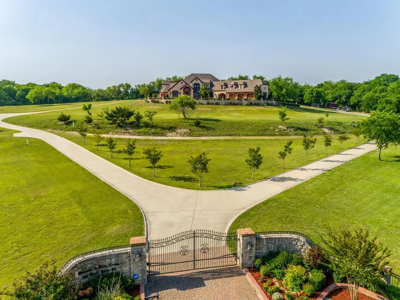 With Breathtaking views, this Stately Manor on 9 rolling acres welcomes you home to your own private retreat. Uniquely designed & crafted, every inch of this property has been hand selected, carved & painted to show off the exquisite details that encompass this home. With 2 vast floors that include multiple living rooms, billiards room, cinema, multiple bars, private suites, handsome library, stunning chefs kitchen, & an elevator to take you everywhere, this home is perfect for the discriminating Buyer. The additional 3800 sqft. basement is well suited for the hobbyist or an exceptional corporate office! This exclusive gated community sits only minutes west of Fort Worth. This property is the perfect place to entertain your entire family with multiple private suites.... the kids will have a blast rolling through the house. This property also makes for the perfect vacation home, or executive corporate retreat! A truly one of a kind estate & lasting legacy for generations to come.