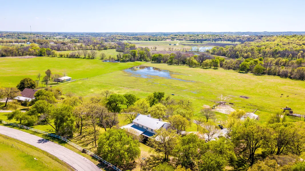 Incredible opportunity on the highly coveted Jenkins Rd. Amazing 15 acres with 2 homes in Aledo ISD! Beautiful mature oak trees create a park-like setting as you pull up the circle drive! The picturesque stone farmhouse boasts an amazing open living with soaring ceilings and tremendous stone fireplace. Wonderful farmhouse kitchen with vintage style ceiling, all open to the dining and cozy den with handsome fireplace. Large master suite with fireplace and enormous bath. Office and guest bed down with 2 beds up. Sit and listen to nature on the beautiful covered porch and gaze over the gorgeous pastures that lead to the Clear fork of the Trinity River. Guest house with open living and kitchen, 2 beds, and 2 baths. 3 stall shed row barn with feed and tack room.