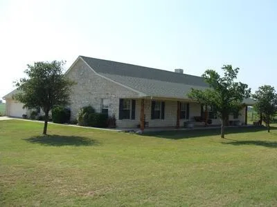 Turn key horse facility. 10 stall barm with 12X12 stalls, 4 12X24 horse paddocks, 3 cattle pens with waters, 11 horse traps with waters, hay storage, numerous horse shelter throughout property, 150 ft lighted round pen, electric horse walker, & bet yet sandy soil covered with coastal bermuda grass. The house is Austin stone with open concept. 3 bedroom and 2.5 bath. Large extra living room or could be used as a game room! Covered porch area and beautiful views!