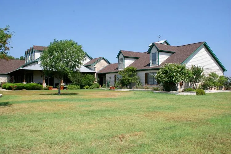 outside balcony. Large covered porches with Quarry tile and cedar trim. A large detached four car garage with extensive upstairs storage. The exterior is beautifully landscaped with flower beds, a large stone planter, and a complete sprinkler system. Nice 1-1 apartment with 6 stall horse barn, tack room, wash bay, and feed area. A 125x225 arena, a 150 round pen, and a 50 breaking pen. Three pipe paddocks with loafing sheds. Pipe entry with a large ornate header, an electric gate, and extensive pipe fencing.