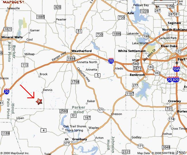 Research Parcel InformationApproximately 40 minutes west of Fort Worth and 20 minutes southwest of Weatherford. Directions From Fort Worth proceed west on Interstate 20 and Exit 397 Brock Junction FM 1189, then south (left) onto FM 1189 for 2.1 miles, continue south for 5.4 miles crossing the Brazos River, continue south for another 1.9 miles, then west (right) onto Cougar Road for 1.4 miles and the property is on the north side (right). Approximately 2407.48 of frontage on Cougar Road.
