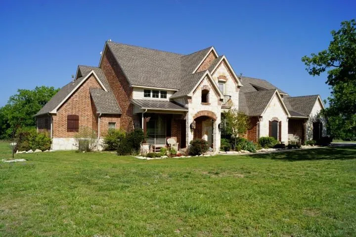 IMPROVEMENTS:A large custom brick & stone home boasting 4 bedrooms, 3.5 baths, and a 3 car garage. Built in 2006. The exterior is primarily brick with stone accents and the front is primarily stone. Low E aluminum windows on the west side. Open concept plan. Beautiful kitchen & breakfast area with tile floor, granite counter tops, tumble marble back splash, granite island, knotty alder cabinets, eating bar. Appliances - Jenn Air double oven & dishwasher, Sharp microwave. Family room with wood floor, cathedral ceiling, stone fireplace, side built-ins, a wall of windows & an Atrium door overlooking the back porch / yard. Butler's pantry with granite counter top & tumble marble back splash. Two propane hot water heaters, propane furnace, propane cook top, and propane fireplace with logs. Three electric a/c units. Covered back porch with slate floor & rough cedar posts & stone accents. Stone patio. Covered front porch. Textured walls, composition roof, sprinkler system, landscaped, post tension slab, and aerobic septic system. Master bedroom with carpet, cathedral ceiling, large windows, and an Atrium door. Master bath with tile floor, jetted tub with tile surround, tile & glass shower, and marble vanity. Study with wood floor, step up ceiling, and crown molding. Formal dining room with wood floor and crown molding. 1/2 bath with wood floor and pedestal sink. Upstairs - 2nd bedroom with carpet, cathedral ceiling, and an outdoor balcony. 3rd bedroom with carpet. Bath with tile floor, marble vanity, tub/shower combination with tile surround. Balcony overlooking family room. Small horse barn with Galvalume exterior, 2 stalls, storage, and tack room.