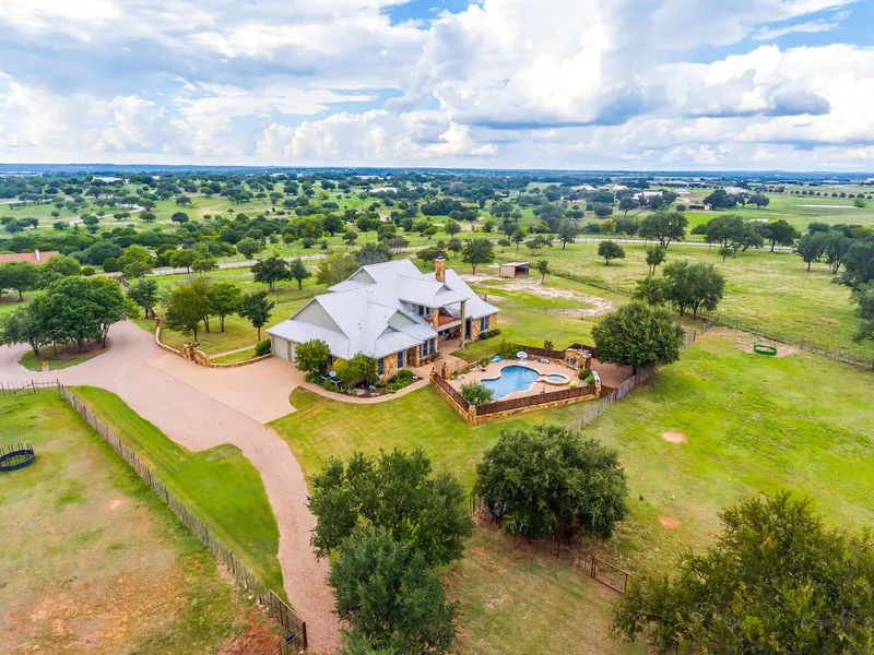 Remarkable equestrian property in Silverado on the Brazos! 4,058sft Texas Ranch style home with views for miles. Vast open living, walls of windows & chef grade kitchen. There is room for everyone w a large study & formal dining, master suit that opens to covered patio, guest bed down, 2 beds up with second living or game room w covered balcony overlooking the property. Enjoy the outdoor patio and sparkling pool w attached spa & fireplace. 6 stall show barn w multiple storage rooms, tack room, washrack, kennels, 2 bed apartment & covered parking bay. Breaking pen. Loping circle. Stone gated entrance. 6 exceptionally fenced pastures w loafing sheds & automatic waterers. WOW! Move in Ready!