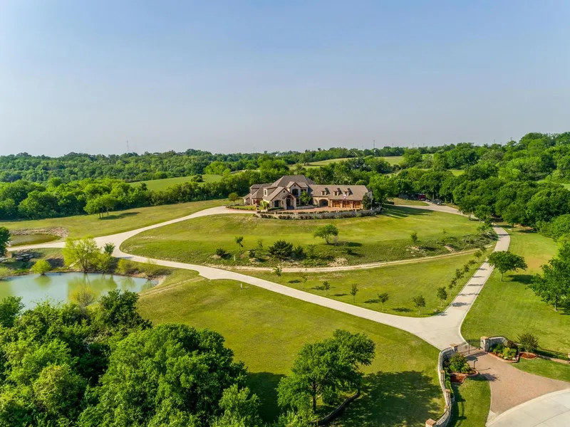 With Breathtaking views, this Stately Manor on 9 rolling acres welcomes you home to your own private retreat. Uniquely designed & crafted, every inch of this property has been hand selected, carved & painted to show off the exquisite details that encompass this home. With 2 vast floors that include multiple living rooms, billiards room, cinema, multiple bars, private suites, handsome library, stunning chefs kitchen, & an elevator to take you everywhere, this home is perfect for the discriminating Buyer. The additional 3800 sqft. basement is well suited for the hobbyist or an exceptional corporate office! This exclusive gated community sits only minutes west of Fort Worth. This property is the perfect place to entertain your entire family with multiple private suites.... the kids will have a blast rolling through the house. This property also makes for the perfect vacation home, or execu...