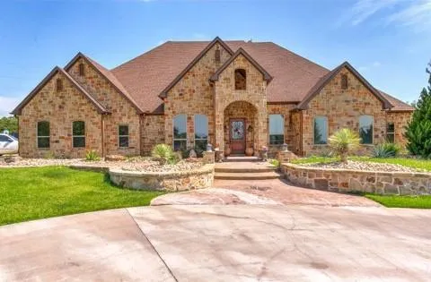 REAL PROPERTY: Beautiful Custom home built in 2011 in the very desirable Brock Independent School District. Easy access to I-20, less than one hour to downtown Fort Worth, DFW Airport and Stephenville. The 3900' Custom Brick Home has 4 bedrooms, 3.5 baths plus a half bath by the pool, an office and a huge flex room with double doors opening to the patio. Hand scraped wood floors and top-notch upgrades down to every last detail. Also 2 outdoor kitchens, along with several areas for entertaining. There's 4 acres of manicured grass with a sprinkler system. The Horse Facility features a 6 Stall Barn with Wash Rack, Tack Room, Man Cave, 900' Apartment and Viewing Area. There's 5 turnouts, and a 1 acre pasture behind arena. The very versatile 160' x 300' Arena has Roping Boxes on one end, rounded for Cutting on the opposite end, a long alley for Barrel Racers and an attached fenced play area for kids.