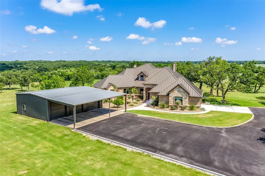Immerse yourself in luxury on 87 acres of serene beauty with this 2,620 sqft ranch home that is placed on a hilltop that incredible views to the NW. Boasting 3 bedrooms, 2.5 bathrooms, and top-tier features, this property epitomizes refined country living. The gourmet kitchen, with granite countertops and commercial-grade appliances, is a chef's dream. Two fireplaces, wood floors, and spacious rooms create an ambiance of warmth and sophistication. The landscape features rolling terrain, majestic oaks, and expansive northwest views. Two tranquil ponds adds a lot of charm, while a 40x30 workshop offers endless project possibilities. The private entry, accented with rock and pipe, leads to a smooth black-topped drive and a sprawling outdoor patio perfect for gatherings. This property combines luxurious comfort with nature's tranquility, inviting you to a lifestyle of elegance and serenity. Discover refined living in this farm and ranch property. Additional acreage is available.