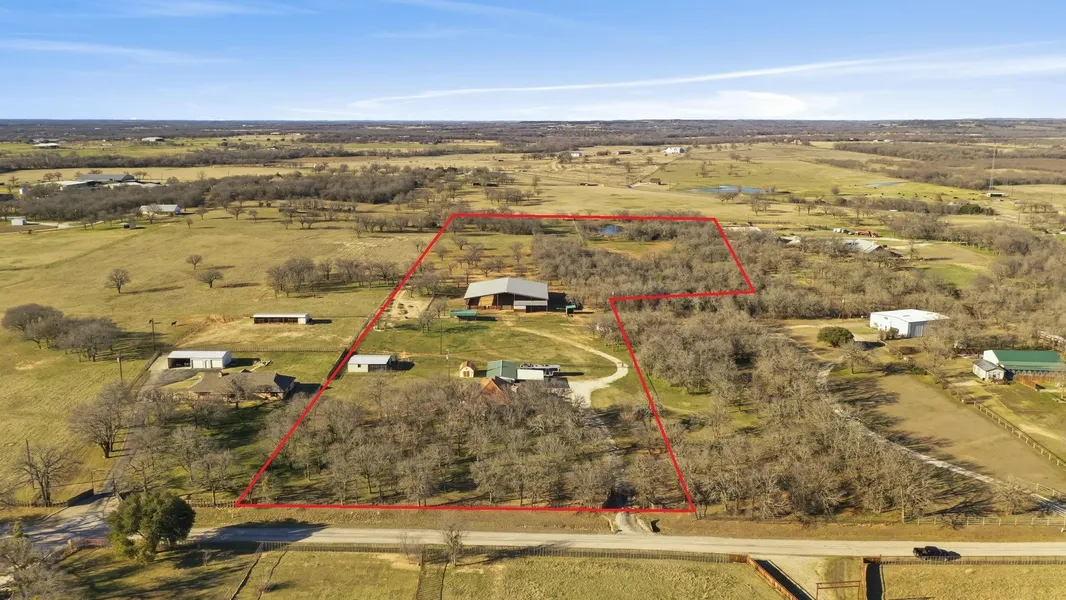 Discover the ultimate 15-acre turnkey horse facility just 2.5 miles from the Brock exit at 120, offering easy access to Fort Worth. This equestrian paradise features a 100x100 covered riding pen, amazing sandy soil, and fabulous trees, making it ideal for training and recreation. The 3-bedroom, 2-bath ranch home is warm and inviting, featuring a stone fireplace, open-concept living, and a spacious kitchen with ample storageperfect for entertaining. The property is fenced and cross-fenced with smooth wire fencing, offering endless possibilities for horses, livestock, or other outdoor activities. With its expansive acreage, mature trees, and a picturesque 1+ acre tank, this property is more than just a horse facilityits a retreat for anyone who loves space, privacy, and the beauty of nature. Additional highlights include a 4-stall horse barn with wash rack and a dog kennel, multiple loafing sheds, 24x50 fully insulated garage or shop, and a trailer hook-up. To truly appreciate the vastness and natural beauty of this property, a personal visit is essential. A rare find that offers something for everyone!