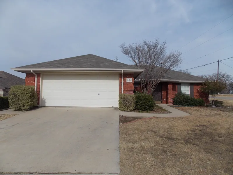 Large open concept living, dining and kitchen with 3 split bedrooms, study or computer area, wood flooring in living area, designer colors thoroughout, finished out garage with AC, large private fenced backyard with a 20x20 open patio. Home is located 25 minutes from Fort Worth or Lockheed Martin. This a keeper and a must show home.