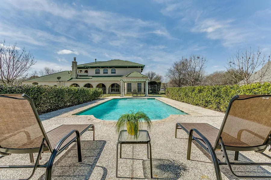 Gorgeous Mediterranean Estate on 3 acres in Aledo ISD! Welcome home to this stunning 4 bed villa in the gated community of Cattlebaron Parc. As you enter through the front door you are surrounded by open spaces, beautiful features & tons of natural light. This home is perfect for entertaining friends & family w the gorgeous large kitchen w flowing counter tops, ss appliances, & butlers pantry. The large master suite over looks the spacious backyard. You feel as if you walked into the set of a classic movie w the marvelous sparkling pool & gazebo. The upstairs living space has tons of room for game night w wood floors, built-in entertainment center, wood burning fireplace & upstairs balcony. Don't miss it!