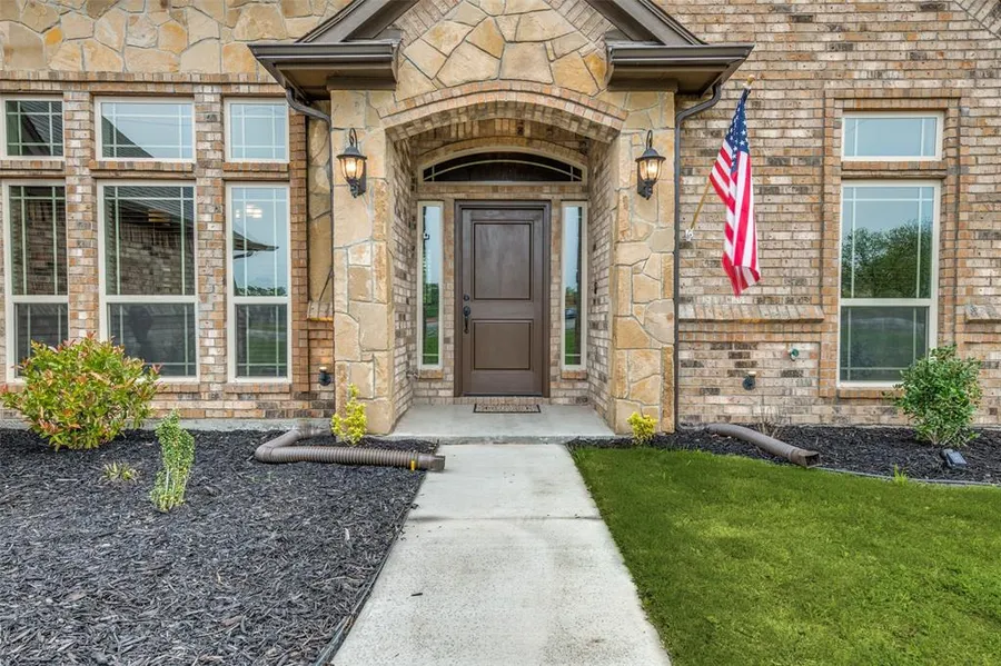 This stunning home has the open concept floor plan that buyers are looking for! The well sized living area boasts a flagstone fireplace as its focal point and is adjacent to the formal dining area and chef's kitchen. This beautiful home has so many upgrades from the hand scraped wood floors, flagstone on the fireplace and on the breakfast bar, lovely moldings around the door ways and so much more! The master suite overlooks the backyard and has as attached spa like bath with a large walk in closet. The secondary bedrooms are split from the master and are bright and airy. The back patio is covered and has a second fireplace, making it the perfect spot to relax and entertain friends and family!