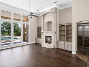 Your chance to buy a great property! Sits Back off Highway. Open Concept 2 story home, 5017 SF, 5 BR, 4 baths w soaring ceilings. Enjoy the pool & spa, w fire pits, water features, diving board,& tanning ledge! Primary BR down w 2- sided fireplace & en-suite bath & sitting area. 3 br down, game room & living room share 2-sided fireplace. Open kitchen, eat in bar, formal dining. formal breakfast, formal LR and dedicated office. 2 BR's & Media room up. Circular driveway, extra parking, side 3 car garage. Adjacent 40x80 shop, insulated w two 15 ft. RV doors, one 8 x 10 rollup door & bathroom, 220 and 110 electric,3.79 acres of fenced property. Livestock welcome.(3) new AC Units, $$ appliances, granite counters, new windows in front, new hardware, new lighting, interior & exterior painting & new carpet & floors Back yard is fenced. 20 min. from Ft Worth, minutes away from medical, shopping,...