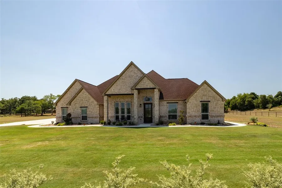 THIS IS THE ONE, the dream home you have been looking for. Custom on 2 acres Cul-de-Sac, Workshop, Gourmet Gas Stove, Wood look tile floors, No HOA, No City Tax, Well and Septic. This home is barely lived in only one hour from DFW Airport. Country living at its best with Weatherford, Azle and Fort Worth just 15 minutes. A chef's dream with a commercial grade gas range, double ovens and large storage. The primary shower is so luscious with multiple sprays that feel like a spa. Back patio has its own fireplace in addition to the floor to ceiling stone fireplace in the great room. The design is so wonderful with a wide grand foyer, huge open concept living, kitchen and dining. There are several wings, one for the primary and the other for the large secondary bedrooms and the study has stunning french doors and a closet for optional bedrooms if needed. The workshop is 500 square feet and has...