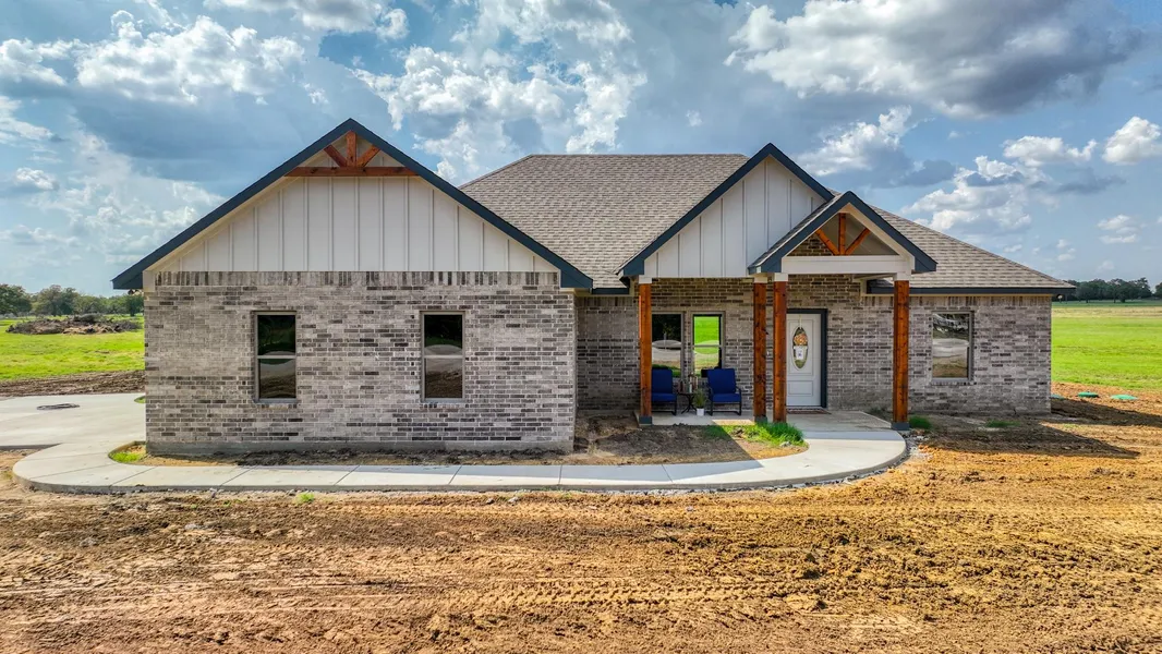 Move in Ready!! This exceptional residence boasts three bedrooms, two bathrooms, and is situated on an expansive 2-acre corner lot, offering abundant space for personalization. Indulge in the charm of Knotty Alder Custom Cabinets, a spacious island, and top-of-the-line Whirlpool stainless steel appliances! FRIDGE Included! The thoughtful layout features split bedrooms, elegant stained concrete flooring, and dual vanities in the luxurious master ensuite & a closet for 2 that conveniently adjoins the laundry room!. With no city taxes or HOA fees, you have the freedom to enjoy country living to the fullest. Bring along your beloved horses and other farm animals. Additionally, take advantage of builder lender credits that are available to help with closing costs, making this dream home even more accessible. Only 25 minutes to Weatherford, 12 minutes to Mineral Wells, & 1 hour to Fort Worth. Txt keyword TEXAS23 to 88000 for virtual tour link & more.