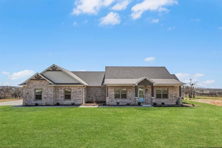 Escape city life to this stunning brand new, never lived in 2,437-square-foot countryside retreat, nestled on 2.048 acres of scenic land with room to roam. This home offers the perfect blend of modern luxury and farmhouse charm with four spacious bedrooms, or three bedrooms plus an office, and 2.5 beautifully designed bathrooms. The oversized three-car garage adds ample storage, convenience and a water softener loop. Step inside this dreamy kitchen featuring upgraded quartz countertops and backsplash, complemented by upgraded KitchenAid appliances, including a gas range, microwave, and dishwasher. The farmhouse-style kitchen hood and island adds a touch of elegance, while the engineered wood floors throughout the home, paired with sleek tile in the wet areas, create a warm and inviting atmosphere. The thoughtfully designed primary bathroom showcases quartz counters and frameless chrome shower doors, offering a spa-like experience. A large walk-in closet provides generous storage, and decorative lighting throughout the home elevates every space. Enjoy cozy evenings by the gas fireplace in the family room, which is enhanced by a stylish Mink fan for added comfort. The home's attention to detail continues with wood headers, a charming shiplap-style mud bench, and a beautiful built-in cabinet in the office. Low VOC paint throughout ensures a healthier living environment, while the owned propane tank adds convenience and peace of mind. Step outside to the spacious back porch with a ceiling fan, perfect for relaxing or entertaining. The expansive yard offers endless possibilities‹”whether you envision building a workshop, adding a pool, or creating a guest house. This property is brimming with potential and ready to be your private oasis. Don't miss the opportunity to make this exceptional home yours in the highly sought after Brock ISD.