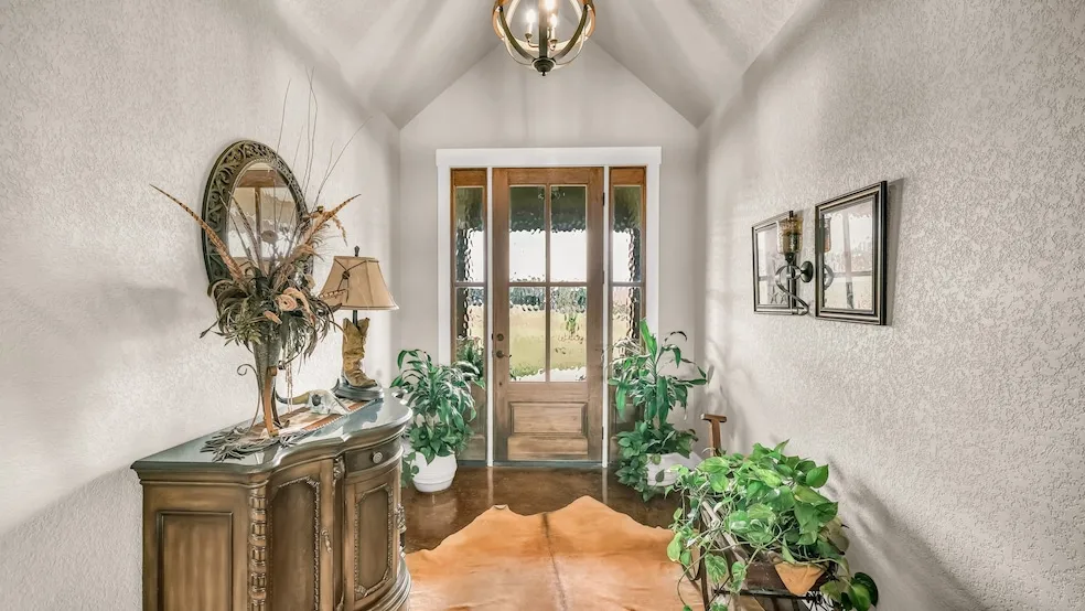 Welcome to your dream retreat in Parker County an exceptional 3BR, 2.5BA home set on 5.02 lush acres in Peaster ISD. Built in 2022, this like-new residence blends modern luxury with the tranquility of country living and plenty of space. A spacious covered porch with wood columns and an elegant oversized glass-pane front door provides the ideal welcome. Inside, rich dark-stained concrete floors create a warm, sophisticated ambiance that flows throughout. The heart of the home is the gourmet kitchen, showcasing granite countertops, custom dark wood cabinetry, and an oversized eat-in island perfect for both daily living and entertaining--and with a generously sized walk-in pantry that ensures ample storage. The family room flows seamlessly off the kitchen, where a fireplace is framed by custom built-ins, adding charm and functionality. From the wood beams adorning the high ceilings to the view of the ample tree line through expansive back windows, the details make this open concept area ideal for entertaining. Privacy is enhanced by the split-bedroom floor plan, with the primary suite offering a peaceful escape. The spa-inspired en suite bath features a huge walk-in shower, separate soaking tub, and an expansive walk-in closet designed for maximum organization. Additional features include oversized doors, plantation shutters, walk-in closets in all bedrooms & flexible space for an office or dining room. The spacious laundry room has tons of storage w granite counters and sink. Additional built-in hall shoe storage off the garage adds to the home s thoughtful functionality, and you will be in awe of the huge garage layout w so much more storage. Outdoor living is just as impressive, w three separate patios ideal for enjoying peaceful mornings or sunset views where you can enjoy deer watching. A large workshop with cross-breeze ventilation from 3 bay doors provides versatile space for hobbies or storage. It is rare to find 5 acres at this price in Parker County, don't wait!