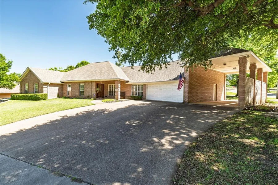 Custom Ranch home across from the beautiful original gates of Chandor Gardens in the historic Weatherford Garden District. Quiet neighborhood with large mature trees and a prized corner lot. Backyard fenced with decorative iron rail fencing and combination locks on the gates. There is a 6 foot stone wall on the north side that gives privacy between the neighbors. Large secure locking mailbox, useful for compiling mail while traveling, Brick carport area set up for RV with electric, water and sewer connections. Spacious 2 car garage (31x20) with shop area, work bench and built in shelves. Specialty electric outlet for electric charging in garage. Inside this gorgeous home are spacious rooms with architectural details such as abundant crown molding, chair rails, faux transoms, pocket doors, and tray ceilings in some rooms. Plantation Shutters and ceiling fans in all rooms. New carpet (2025) in all 3 bedrooms. Lots of storage with built in cabinets and a walk in cedar closet! Home includes gas log fireplace, utility sink in laundry room, two tankless water heaters, new stainless steel kitchen appliances and a high efficiency air conditioner and heat replaced in 2022. You will enjoy walking to the historic square with 7 restaurants, ice cream parlor and coffee shop & 25 boutiques on York Avenue. Cherry Park is 6 blocks away with playground, basketball court and a refurbished municipal swimming pool. 4 blocks away is the library, tennis courts and ball park fields while Love Park is 3 blocks away with pickle ball courts, fishing pond and playground complete with dancing water. Weatherford is a charming town, established in 1858, and has 40k citizens and 180k in the county, Fort Worth is convenient by Interstate 20 and is 21 miles away and DFW International Airport is 60 minutes away as well as Love Field 65 minutes. Oh yes, did I tell you Costco just opened in our town as well as HEB is 3 exits away. Weatherford True Texas Come and Enjoy the Good Life!