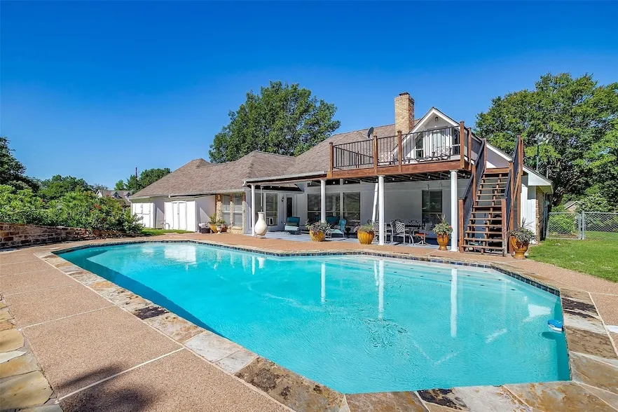** MULTIPLE OFFERS RECEIVED!** OFFER DEADLINE: WED. JULY 2nd, 5:00pm ** ALEDO ISD Welcome to this charming home on a full acre in the highly desirable Aledo ISD. Featuring 4 spacious bedrooms and 2 bathrooms, this home also includes a versatile upstairs loft ideal as a cozy reading nook or a private retreat for a teenager. The open-concept living area is bright and welcoming, perfectly positioned as the heart of the home for gatherings and celebrations. The kitchen flows seamlessly to the expansive back patio, where entertaining is effortless with a sparkling pool and plenty of space to relax or host guests. The backyard also boasts a full-size volleyball court perfect for active fun and outdoor enjoyment. When pool season winds down, enjoy peaceful mornings or relaxing evenings on the upstairs balcony with a warm cup of coffee or a glass of wine. The inviting primary suite features an ensuite bathroom and his-and-her closets for added comfort and convenience. This well-loved home is ready for its next chapter come make lasting memories in a place that truly has it all. A new roof will be installed prior to closing. The septic system has been recently pumped.