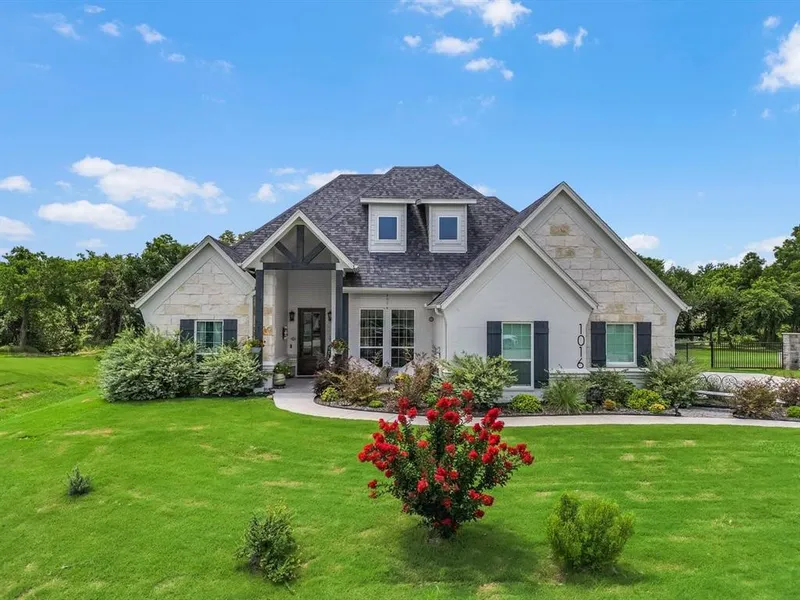 Thoughtfully designed, impeccably upgraded & thousands of dollars spent, this stunning 3 BR, 2 BA home with a dedicated office is nestled at the back of a quiet cul de sac, offering both privacy, charm and plenty of room to roam. From the moment you step inside, you'll notice the attention to detail & craftsmanship throughout. The open concept layout is anchored by a gorgeous farmhouse style board & batten fireplace, perfectly complemented by coffered ceilings with exposed beams in both the family room & office. The main living areas feature plank tile, while the secondary bedrooms are outfitted with upgraded plush carpet for added comfort. The kitchen is a true showstopper featuring custom stained Alder cabinetry, sleek quartz countertops, a tiled backsplash, farmhouse sink, stainless steel appliances & a walk in pantry with a beautifully trimmed glass door. The dining area offers peaceful views of the backyard oasis. Retreat to the spacious primary suite, where you'll find a luxurious en-suite bath with a soaker tub, a separate walk in tiled shower, dual sinks with a large vanity, privacy window & a custom-trimmed mirror. The walk-in closet is a dream, fully built out with floor to ceiling storage, up to the ceiling hanging rods, a bench & even a mirror. Additional highlights include: Office with 8-ft glass french doors, secondary bath with herringbone tile surround & a custom mirror, bedroom with a window seat niche, utility room with sink & mud bench, 5‹ baseboards, upgraded light fixtures, class 4 roof & fully insulated attic with floor boards, custom wood trim around all interior doors, solar panels with EV charging port, epoxy coated garage floors & an garage closet with AC currently used as a wine closet, a tastefully landscaped yard with mature trees, added retaining wall, fire pit, planter box & a creek running through the back for a peaceful country feel, covered back patio with sun shades & misters, 12x20 shed or shop pad, rain gutters, uplighting & more