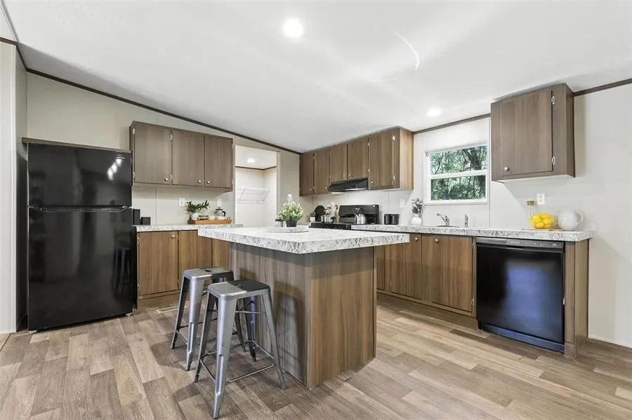 The American Dream!! Home ownership at it's best. Come home to a newly constucted manufactured home on this scenic wooded property. Escape the hustle and bustle of the city. Spacious open floorplan allows a flow for entertaining or daily activities. Natural lighting floods the kitchen, dining and living areas coming from the double glass sliding doors to the backyard porch. New appliances compliment this charming farmhouse look. Eat in kitchen island or add a small bistro table for an extra seating area. Plenty of cabinets and counter space and accent backsplash for an avid chefs ideal kitchen. Don't forget the primary suite includes primary bath with tub and shower combo and oversized walk in closet. Split floorplan gives the feeling of your own private getaway retreat. Secondary bedrooms share a well appointed full bathroom. Enjoy morning coffee or evening sunsets surrounded by nat...