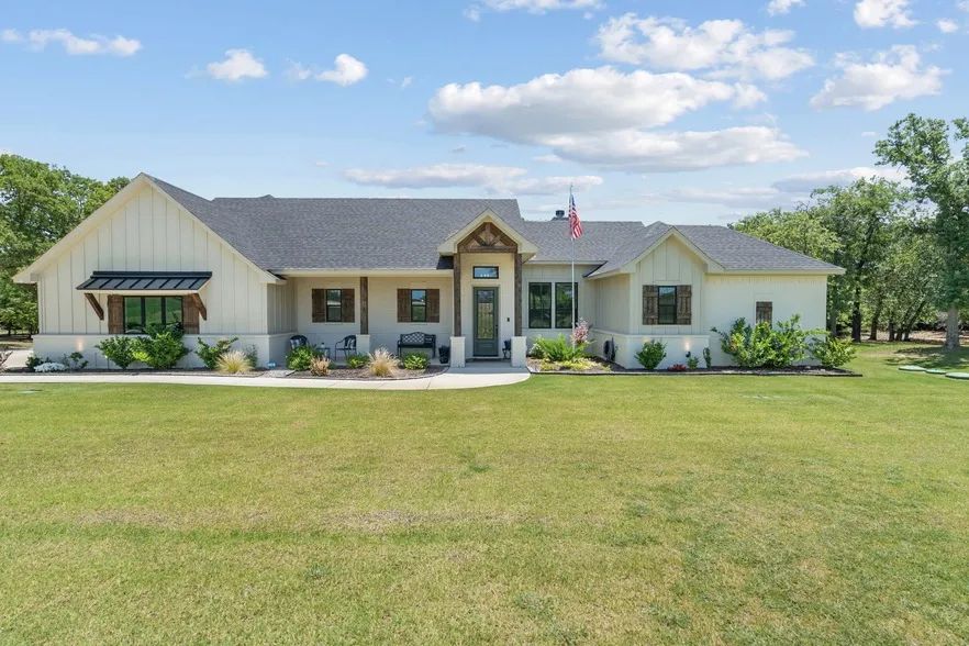 Welcome to your own private retreat! Nestled on 2 secluded acres, this custom-built 4-bedroom, 2-bathroom home offers the perfect blend of peaceful country living and comfort. With 2,285 square feet of well designed space, this property has room to stretch out inside and out. From the moment you arrive, you ll appreciate the quiet setting, surrounded by nature and frequented by deer and other wildlife. Inside, the home features a warm and welcoming layout with spacious living areas, split bedrooms, tall ceilings, and beautiful finishes throughout. A dedicated home office provides a quiet place to work or study, tucked away for privacy without sacrificing functionality. The heart of the home is the open-concept kitchen and living area, ideal for both everyday life and entertaining. Large windows allow natural light to pour in and showcase the scenic views beyond. Each of the four bedrooms is generously sized, and the primary suite is a true retreat with a private ensuite bath featuring walk in shower, dual vanities and a spacious walk-in closet. energy-efficient with spray foam insulation on the exterior walls and roof, helping to maintain comfortable temps year-round Step outside to enjoy the incredible outdoor living space. The covered back patio, complete with a cozy fireplace, is the perfect spot to relax year round, whether you're sipping morning coffee, enjoying dinner under the stars, or gathering with friends on a cool Texas evening. The backyard is partially fenced, offering safety for pets or children while still giving you that open, expansive feel. The property layout and mature trees provide a feeling of peaceful separation and privacy. You're just a short drive to town, shopping, dining, and schools, offering the perfect balance of seclusion and convenience. Don t miss the chance to own this one-of-a-kind property, schedule your private showing today!