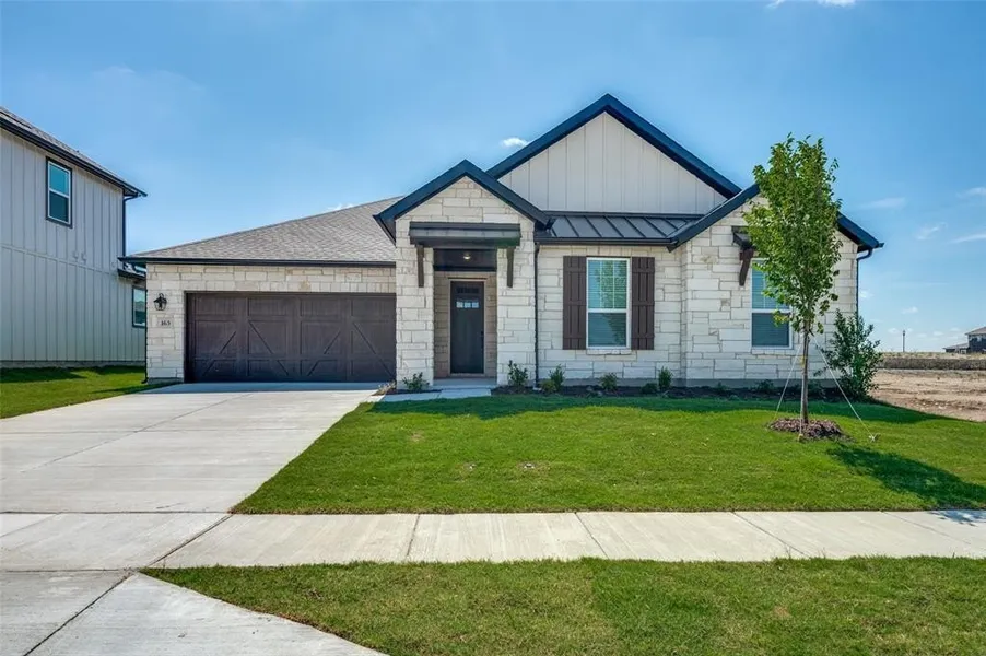 Highly Sought-After ALEDO ISD! Discover modern living in this single-story home with a seamlessly flowing open concept kitchen and living area under 9’ ceilings. Embrace style with quartz countertops, stainless steel appliances, and a gas range stove in the kitchen, while enjoying the extended covered patio and lush backyard with automatic sprinklers. The primary bath boasts an extended vanity, separate tub and shower, and elegant finishes. With decorative touches like stone veneer exterior and smart home features including a Wi-Fi oven and smart thermostat, this home truly offers effortless living. Ask sales counselor about closing cost and rate buy down opportunities.