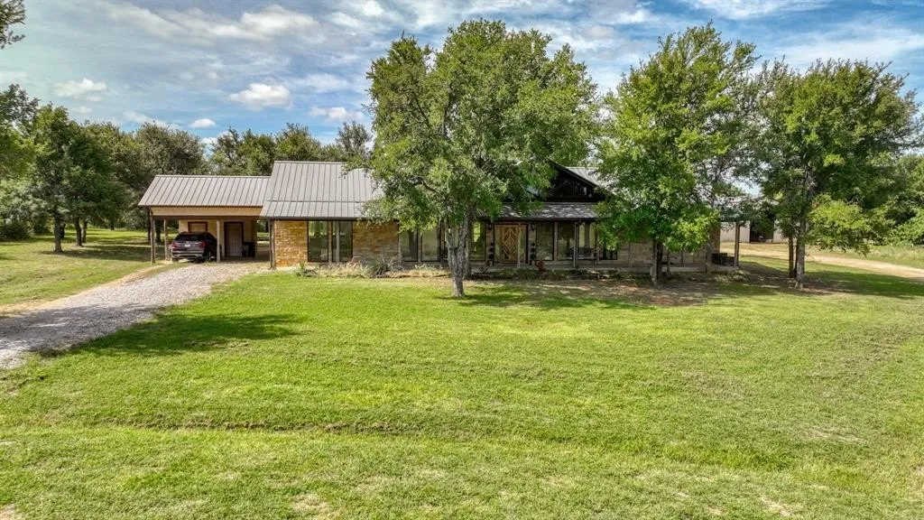 UNIQUE RESORT - LIKE PROPERTY! This is a GREAT Room! Approximately 32' x 24' with 25' beamed ceiling, floor to ceiling stone wood burning or electric fireplace, Open Living room, Dining room, Kitchen, with wine storage, some glass front cabinets and double oven, (powder room attached) PLUS a wall of Windows to let the Sun Shine in! Heated and Cooled with mini splits for big savings on utility bills. TWO EXTRA LARGE Primary Bedroom suites, both with ensuite bathrooms and oversized closets. The square footage includes the adorable detached GUEST HOUSE. BRING YOUR HORSES! 11.119 AG EXEMPT ACRES, Fenced and Cross Fenced, mostly Horse fencing, two pastures in front and back acreage is wooded. 2100 square foot BARN includes 4 Stalls, Workshop, Tack room, Storage room, and loafing shed. Enjoy the pretty tank from the expansive front porch and the wildlife from the back porch, or sip sweet tea ...