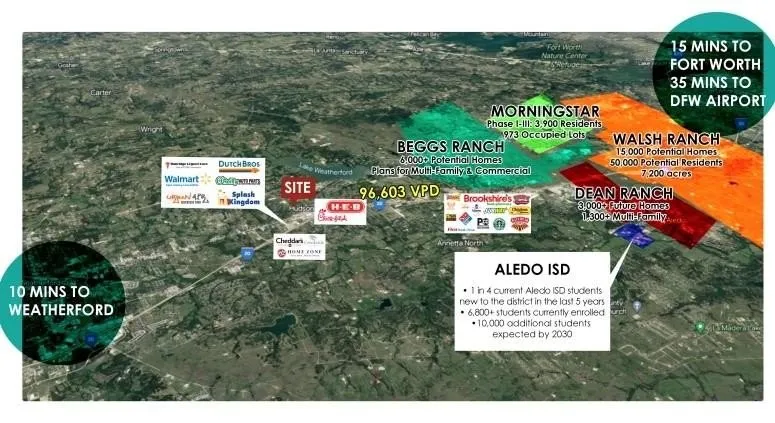 Oakey Landing - Introducing the Premier Business Destination in Hudson Oaks, Texas! This brand new real estate development is nestled in the heart of Hudson Oaks, Texas, where opportunity meets prestige. Strategically situated off Oakey Trail and Midway Lane, with high traffic counts and easy access to two major highways. Our build- to-suit spaces provide the perfect canvas for your unique vision. Whether you're a boutique retailer, restaurant owner, or service provider, our flexible layouts cater to your specific needs, ensuring maximum efficiency and functionality. This affluent suburban setting offers a prestigious address that resonates with discerning clientele. Capitalize on the purchasing power of the local demographic and establish your brand as a premier destination for luxury and convenience. With 30% of our development already pre-leased and an anchor tenant secured, now is the time to secure your space and seize the opportunity to position your business for success.
