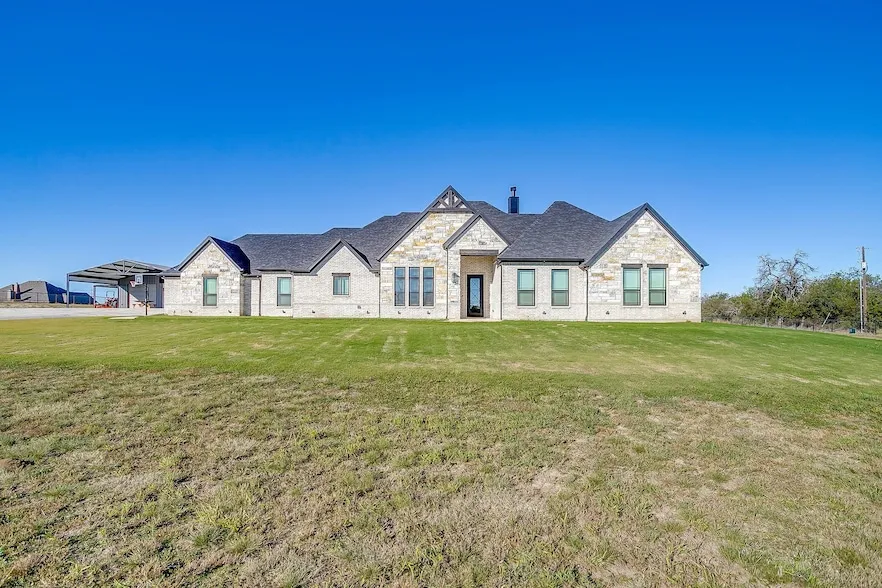 Luxury Estate & Premier Industrial Shop. Room for appx 9 vehicles in the garages with another 3 cars under the carport and appx 400ft of concrete driveway! Private 5 acre dead end property with no HOA and minimal restrictions. Gated and fenced with 2 7 8 tubing and 5 ft no climb perimeter fencing custom cedar entrance. A world class climate controlled shop, this estate is designed for high end living and professional utility. 4 Bed 3 Bath, Open Floorplan all in one story. Large Breakfast bar island, Office, could be used as a 5th bedroom. 3 car garage w epoxy floors, Post tension engineered slab fully piered $17000 upgrade w 10 yr structural warranty! Spray foam insulation in all exterior walls and attic plus blown in attic insulation. Dual Trane XR heat pumps 5 ton and 3 ton w emergency heat. Whole home water filtration and Vivint security w 5 cameras. Wood burning fireplace white faux wood blinds and Nest doorbell. Premier Industrial Shop is a 40 x 60 x 12 enclosed building fully heated and cooled 1 inch white spray foam insulation, Expansion: 25 x 40 x 12 gable carport w 2 ft skirts and 6 ft Big Ass Fan, Two 60 x 10 covered porches w LED lighting. Two 12 x 10 roll up doors w LiftMaster WiFi openers three steel walk in doors. Professional Equipment:11000 lb Triumph 2 post lift 5 HP 80 gal Ingersoll Rand compressor 75 ft air reel 50 ft electric reels and 50 30 amp welder power. 16 x 16 flex room office salon has half bath, washer dryer hookups, and ice machine hookups. Dedicated 200 amp meter, Rheem tankless water heater and 5 ton Lennox HVAC system. Water: 200 ft deep well 15 GPM 1 HP submersible pump. Access: 300 ft concrete driveway 1 HP LiftMaster swing gate and 20 ft wide dual rear gates Exterior: 14 zone sprinkler system 10000 sq ft coverage whole home WiFi controlled decorative and Christmas lighting and in ground basketball goal Utility: 320 amp main house service aerobic septic system and independent 50 30 20 amp exterior RV power. Buyer to verify all info