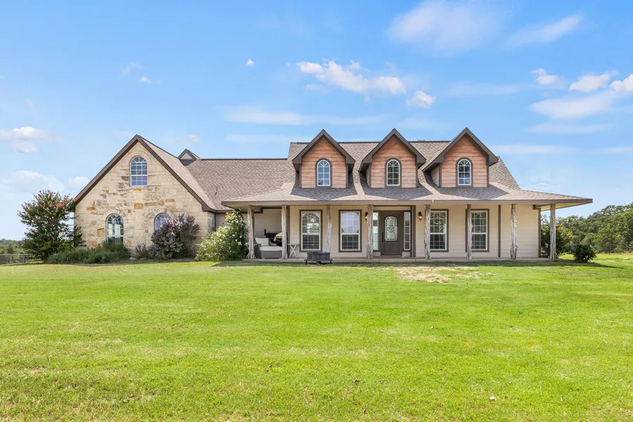 Welcome to your new horse property nestled on 10, Ag Exempt and secluded acres in Weatherford! This 2,469 square foot home boasts 4 beds, 2 baths & has the perfect blend of modern & rustic elements, brought forth by a river rock fireplace that is wood burning, large windows for abundant natural light, decorative lighting, kitchen with large island, plentiful countertops & large walk in pantry! The primary bedroom has a electric fireplace an Ensuite bathroom with a large garden tub, separate shower & walk in closet!! Split floorplan, with one bedroom upstairs, each bedroom has plenty of closet space! Outside you will find a 1000 sq ft unfinished apartment, that has electrical & plumbing in place, washer/dryer hookups & 300 sq ft of storage upstairs, it has potential for rental income or guest house. 300x190 arena with sandy loam soil, roping boxes, water lines have been ran to all pastures on the property, fenced & cross fenced with pipe & no climb wire. Fruit orchard with peach, plum & apple trees! Storm cellar!