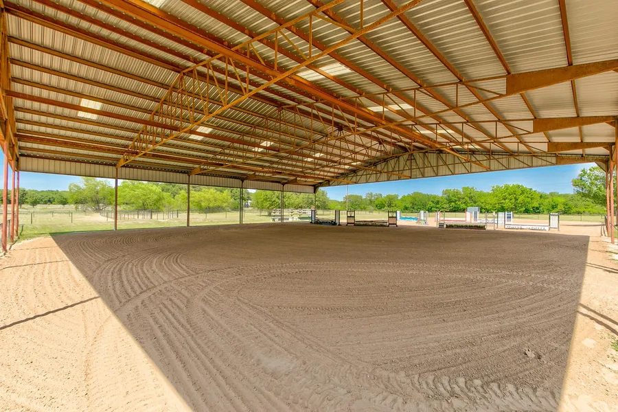 Located in the highly sought after Parker County, this turn-key equine facility is an ideal fit for the avid horse lover or full-time horse trainer. A beautiful gated entry welcomes you to this meticulously maintained training facility & residence. Countless world champion show horses have been trained from this facility. The exceptional facility design provides functionality and convenience at the highest level. The 100x200 arena, partially covered, is perfect for all-weather enjoyment. The 15 stall barn is all-encompassing for your needs with an oversized tack room is finished out with cabinets and full washer and dryer hook up. Crossties and a separate wash rack allow this facility to check all boxes. There are 2 other storage rooms available for additional tack or storage. Covered hay storage on the rear of the barn for convenience. The large circle driveway allows for even semi-truc...