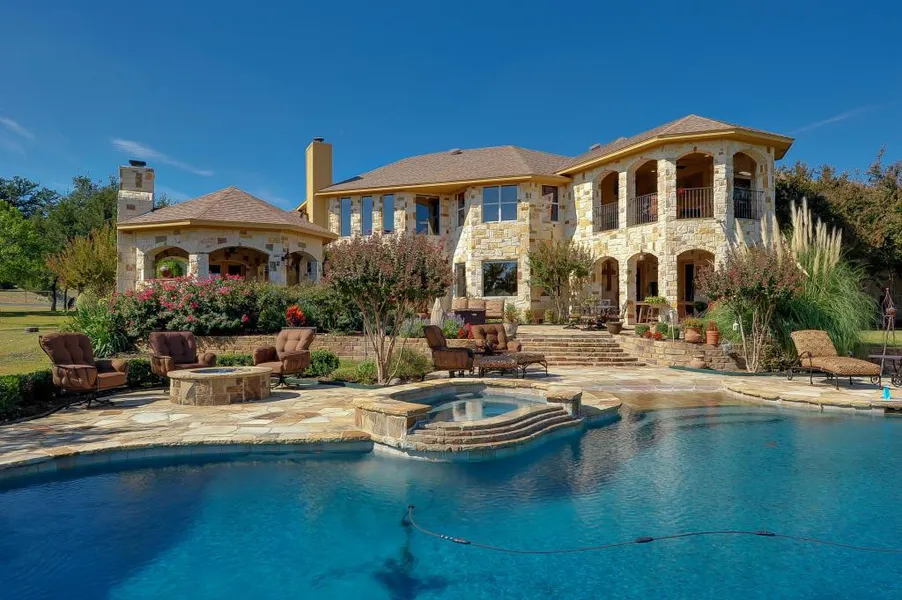 EXQUISITE CUSTOM HOME ON 10+ HORSE FRIENDLY ACRES in exclusive gated Aledo community. Aledo ISD. Fabulous outdoor entertaining. Custom wood timber trim, ceramic tile, and granite throughout. Custom updated bathrooms. Austin stone outdoor living area with pool, fountains and fire pits. Gourmet kitchen stainless appliances. Fabulous outdoor kitchen with cozy fireplace. Second story billiards room and large luxurious media room with a bar.