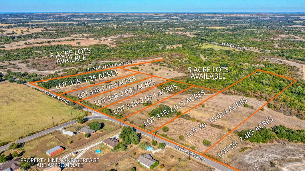 This beautiful 3+ acre property features treed acreage & open spaces with an abundance of road frontage allowing for many options. Bring your own builder to build your dream home, just minutes north of the downtown square. Barndominiums are allowed and there's no HOA! Guest house or second mother-in-law home allowed for multi-generational living. Horses, cattle & small farm animals allowed. Be one of the first to claim your ground in this new addition, surrounded by various tracts ranging from 2 to 10+ Acres. Restricted to protect your investment, yet relaxed giving you freedom on your own land.
